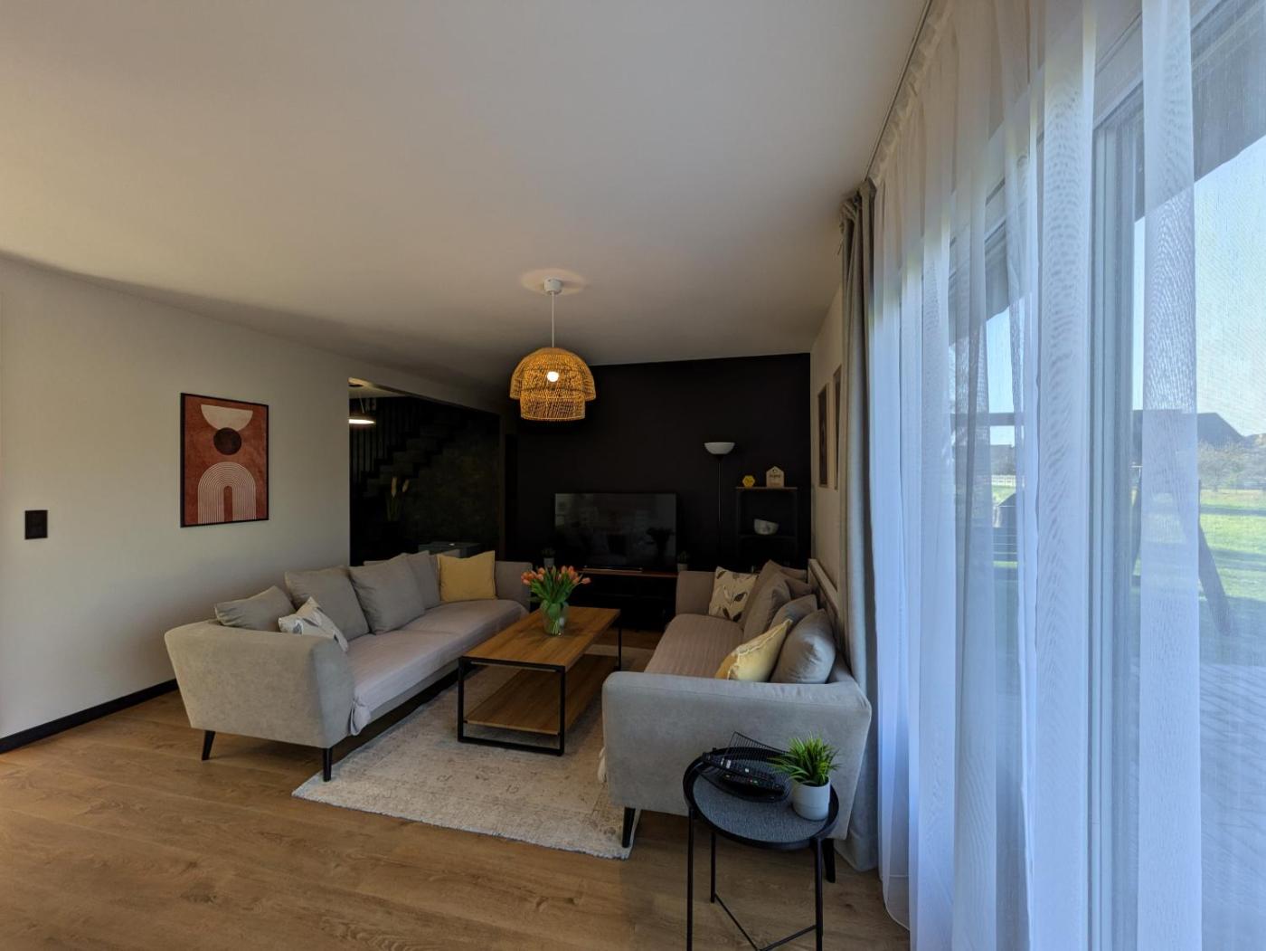 W domu wakacyjnym zapewniono kilka sypialni (2), łazienkę (1), pościel, ręczniki, jadalnię oraz kuchnię z pełnym wyposażeniem. Do dyspozycji Gości jest także telewizor z płaskim ekranem z dostępem do kanałów satelitarnych oraz taras z widokiem na ogród.